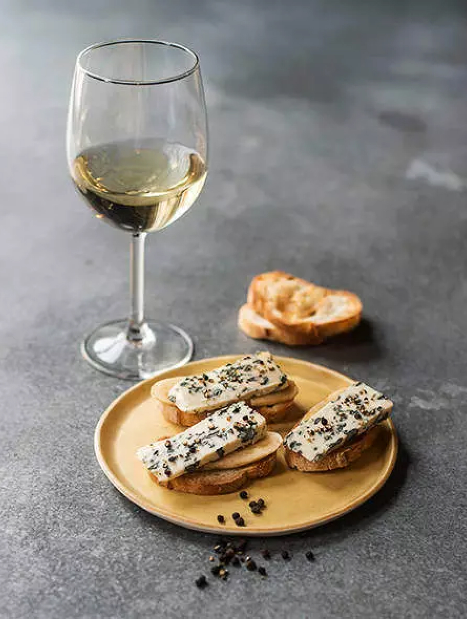 - Griller légèrement des tranches de baguette, puis disposer les morceaux de fromage sur le pain chaud.